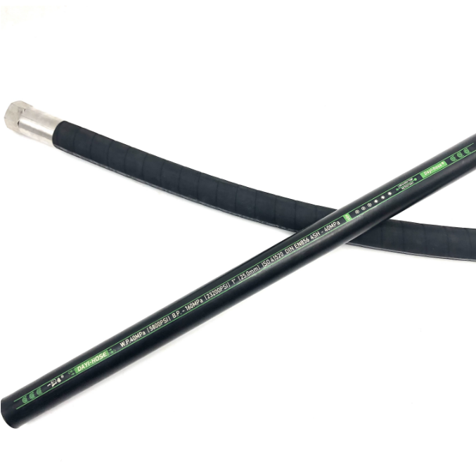 Similar to EN 856 4SH hydraulic hose, EN 856 4SP hose has higher working pressure under the same working temperature. Four layers of high tensile spiral wire give the hose best abrasion resistance and impulse fatigue. This kind of reinforcement is ideal for outdoor applications like forestry and mine equipment.